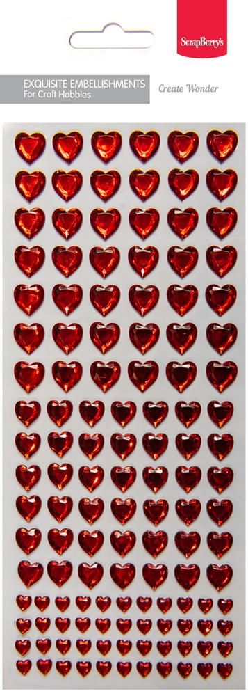 Adhesive gems red hearts mängd