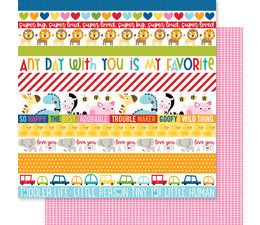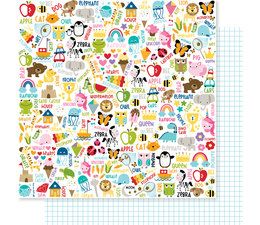 This 12″ x 12″ Collection Kit is part of the Tiny Tots 2.0 Collection from Bella Blvd. This kit contains 20 double sided, textured patterned papers, two double sided borders papers, and two double sided daily details papers, all 12″ x 12″. There is also a 12″ x 12″ Doohickey sheet of cardstock stickers. The papers include all the single papers sold separately in this collection. There are a variety of papers with bright colors, baby animals, stripes, stars, vehicles, apples, hearts, and more. The sticker sheet includes a variety of border pieces in scallop designs and a star border, an alphabet, numbers, and punctuation marks, circles with images, banners with words and phrases, flowers, stars, hearts, tabs, and photo corners. These papers and stickers can be used for cards, scrapbook pages, tags, journals, planners, and other paper crafting and mixed media projects. These papers and stickers are made in the USA.