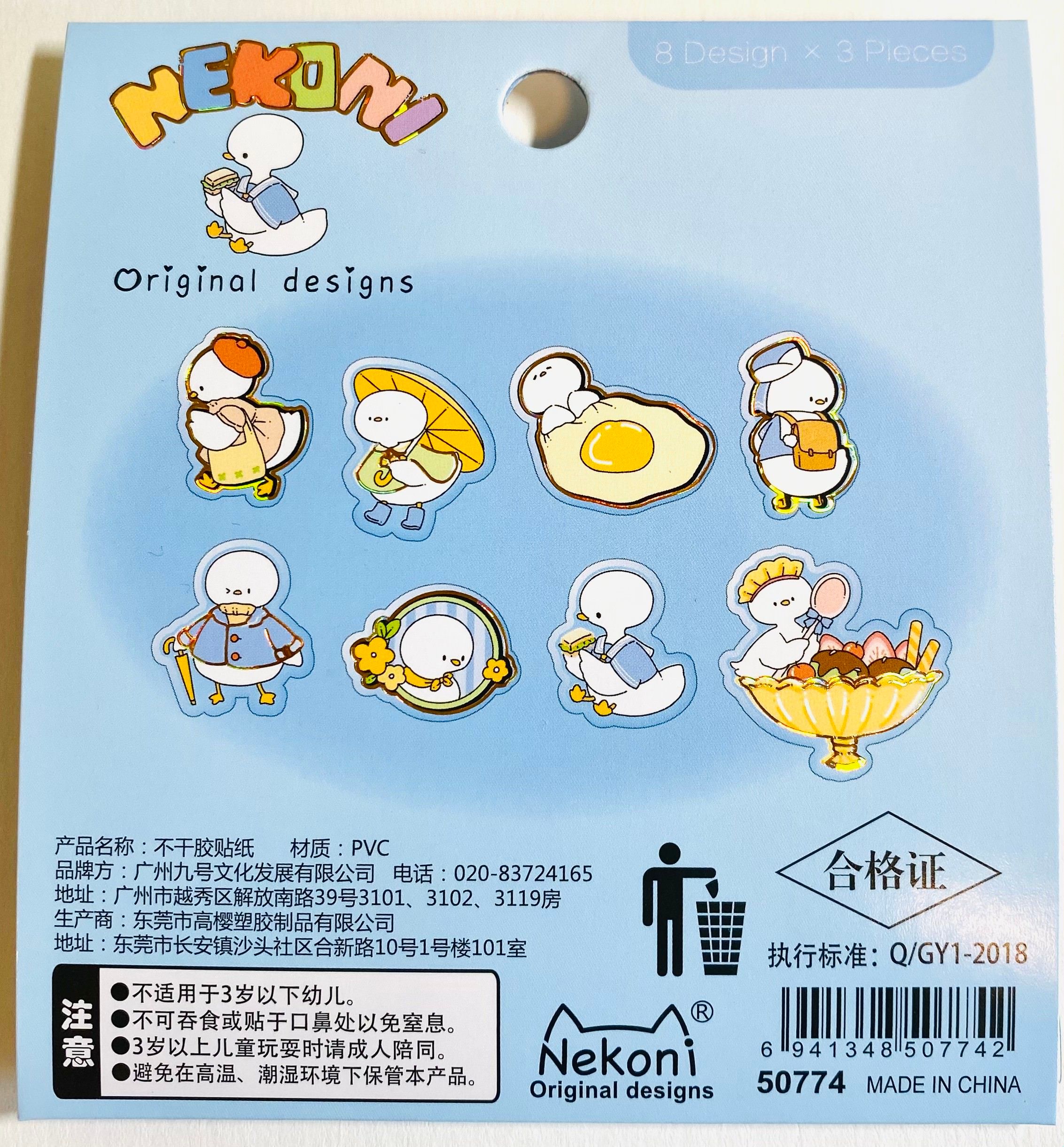 Eight different designs, three of each.