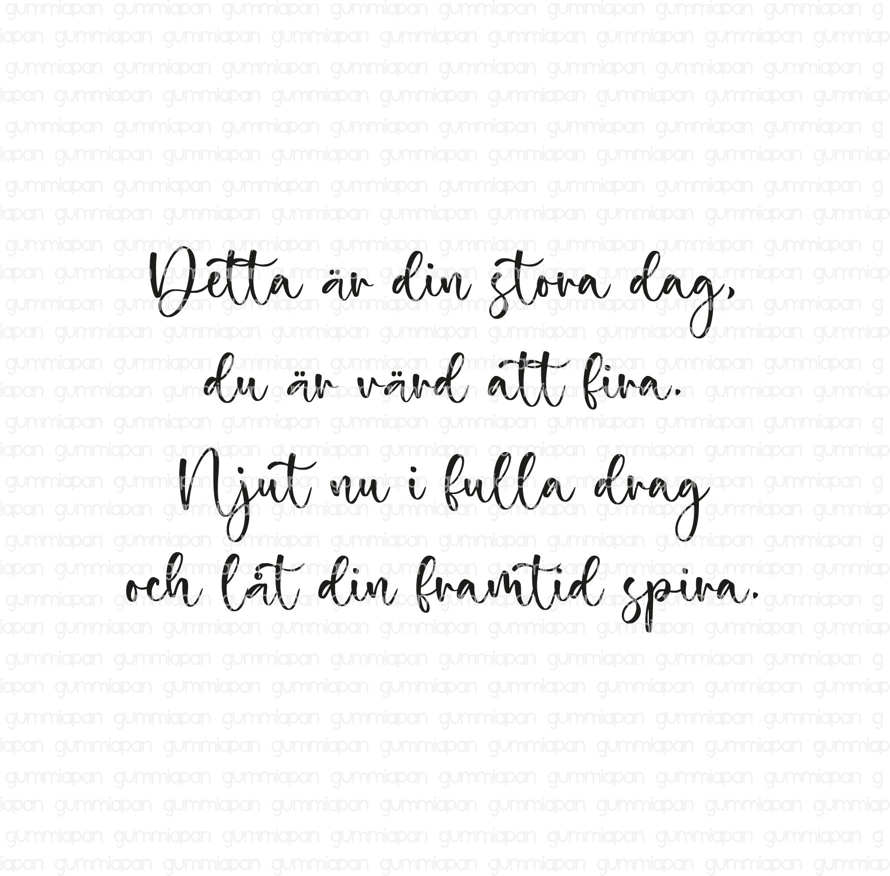 Detta är din stora dag, du är värd att fira. Njut nu i fulla drag och låt din framtid spira. quantity