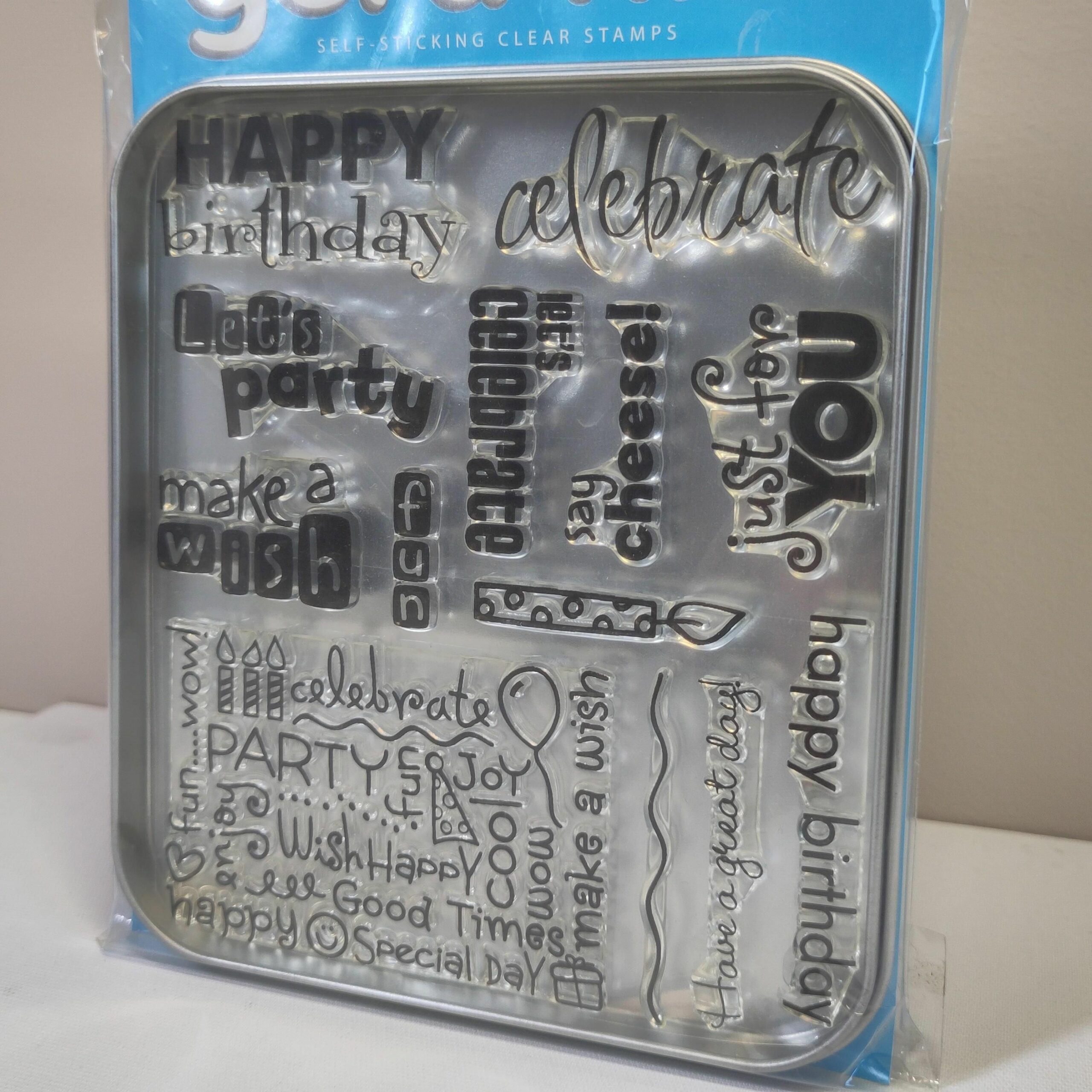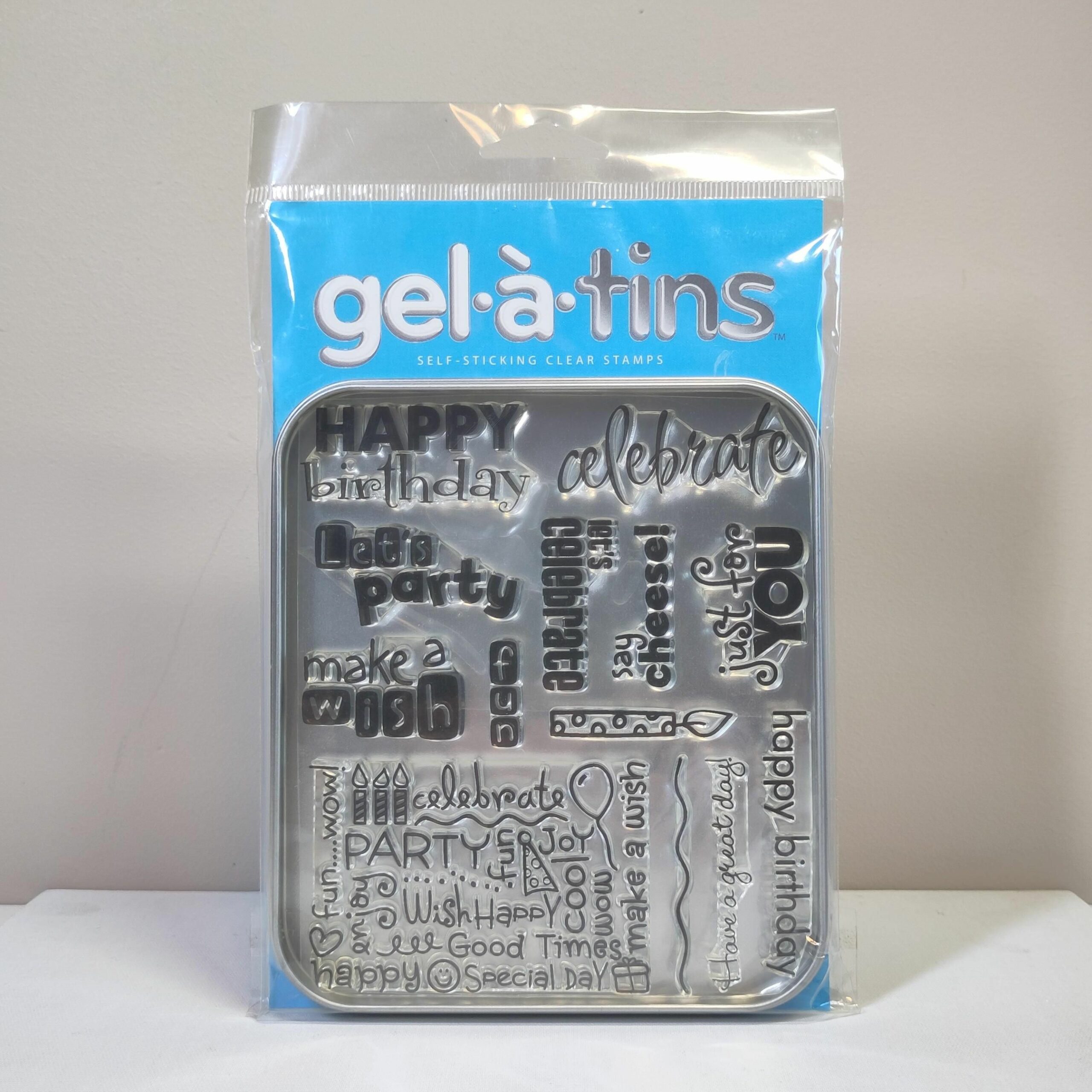 Gel à Tin self sticking clear stamps with tin box for easy storage!
