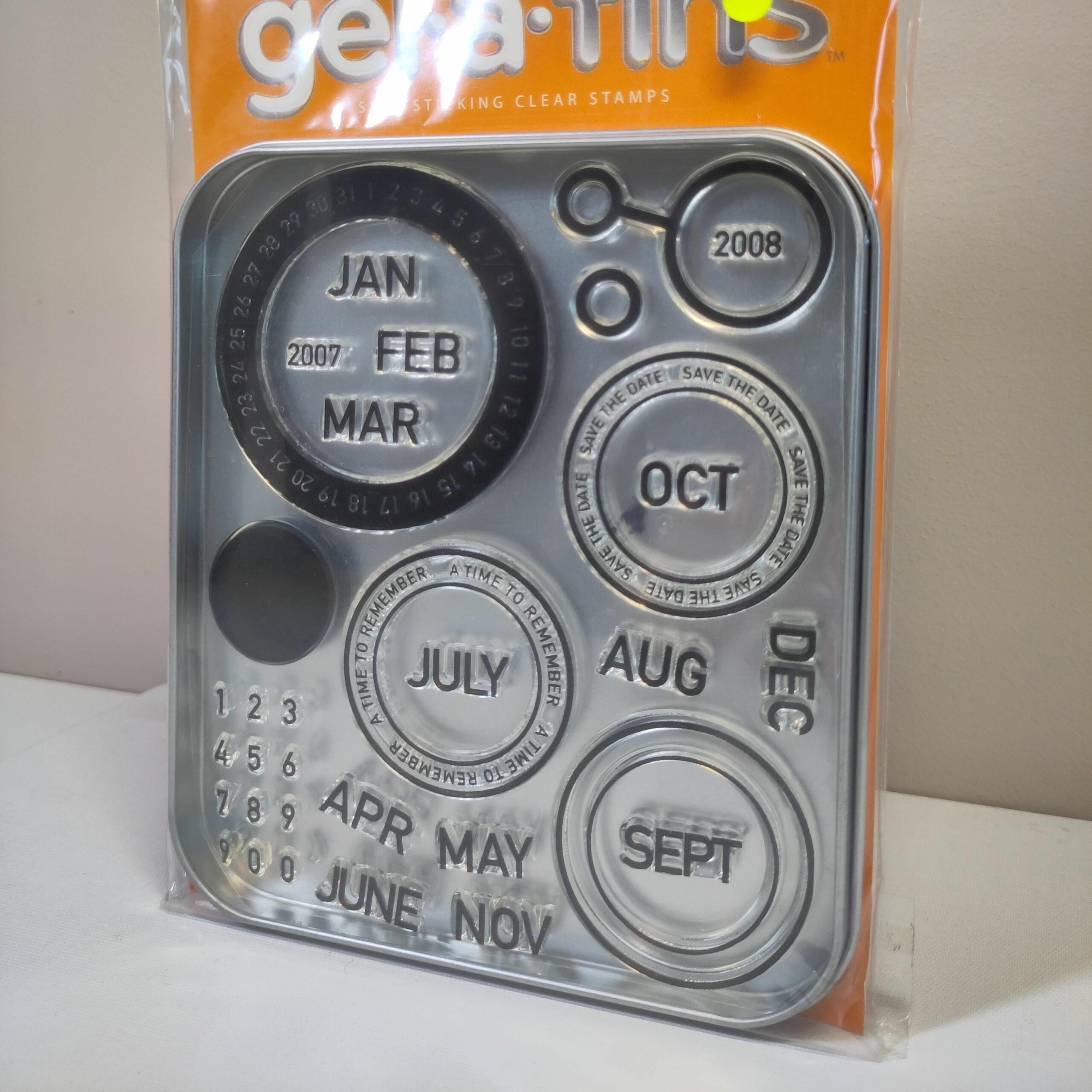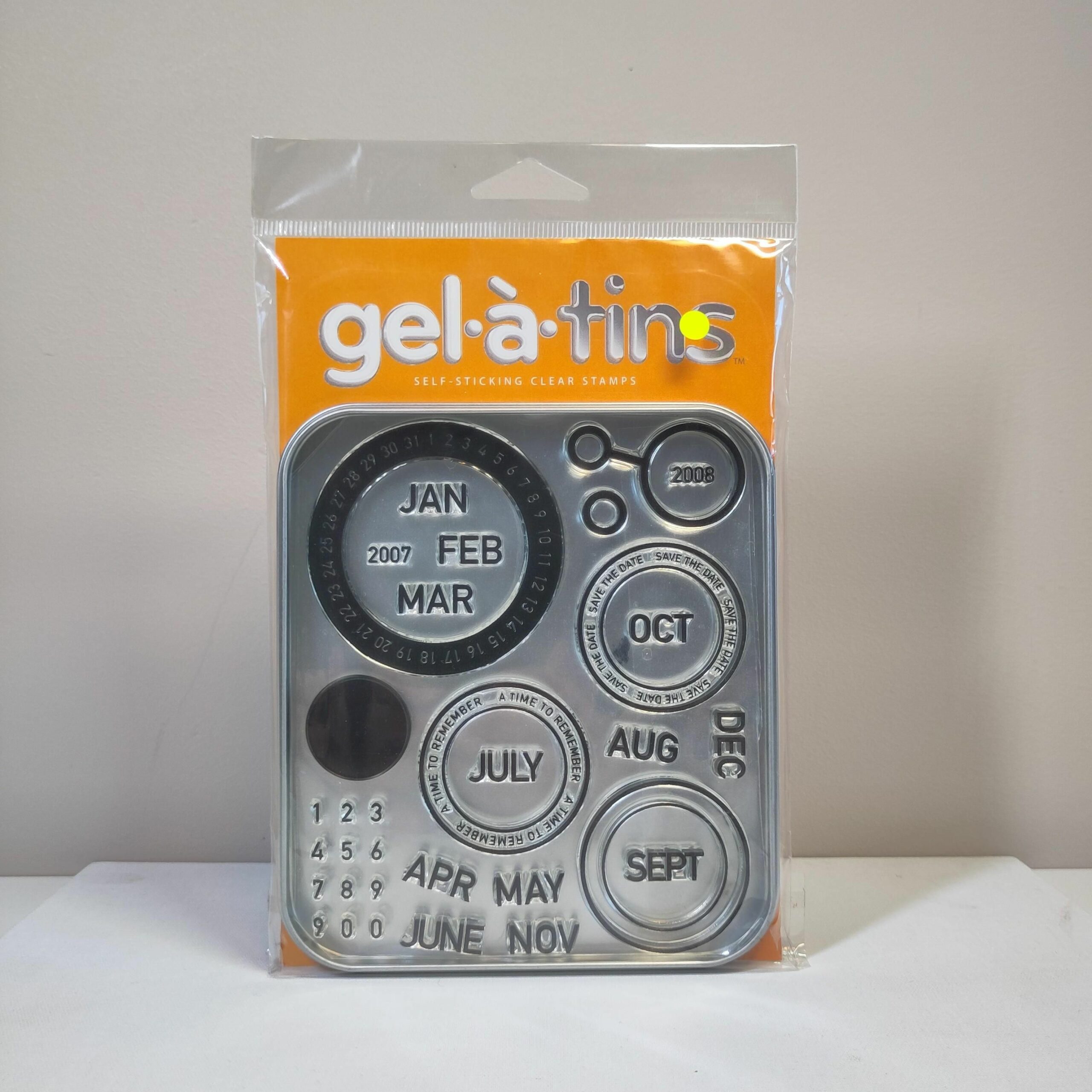 Gel à Tin self sticking clear stamps with tin box for easy storage!
