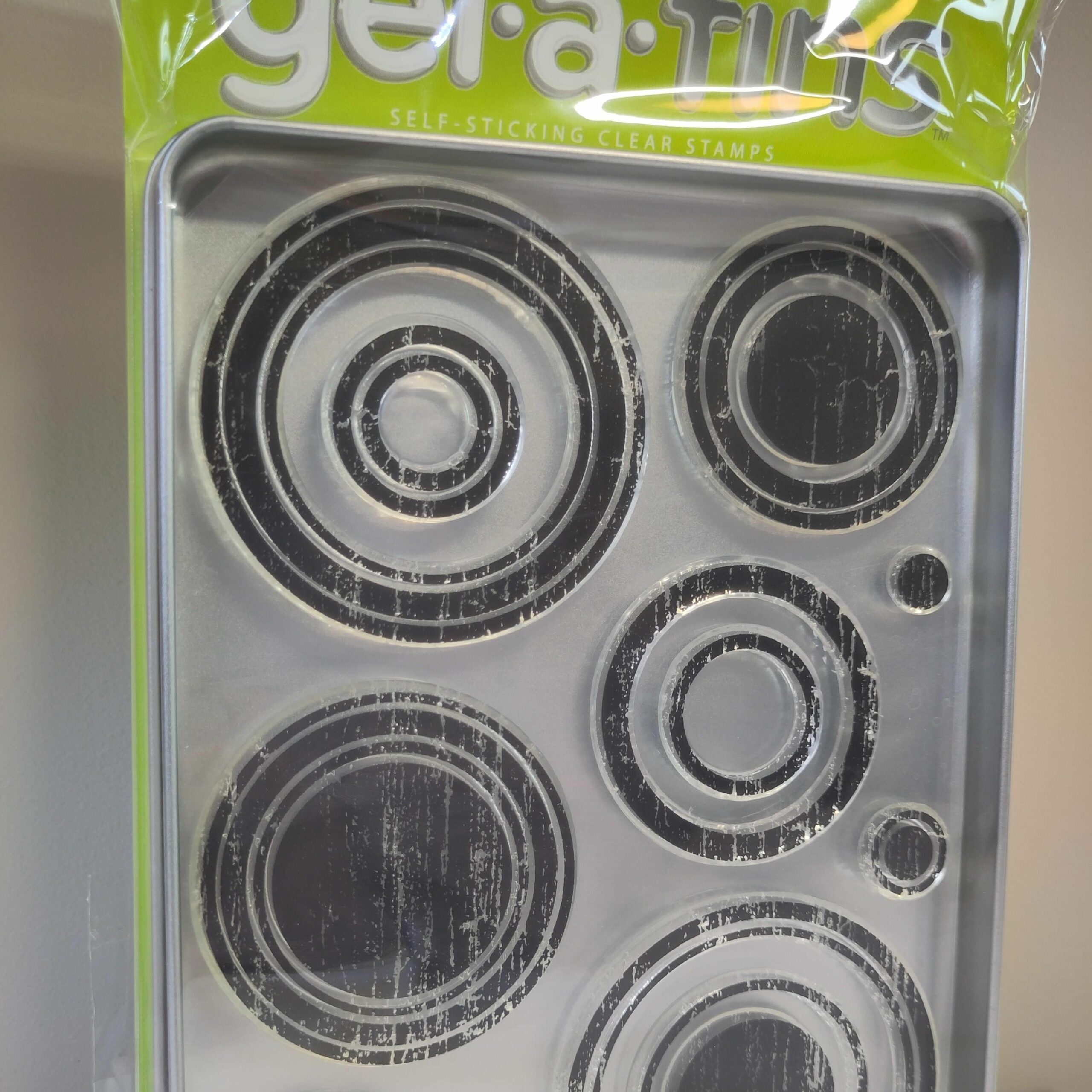 Gel à Tin self sticking clear stamps with tin box for easy storage!
