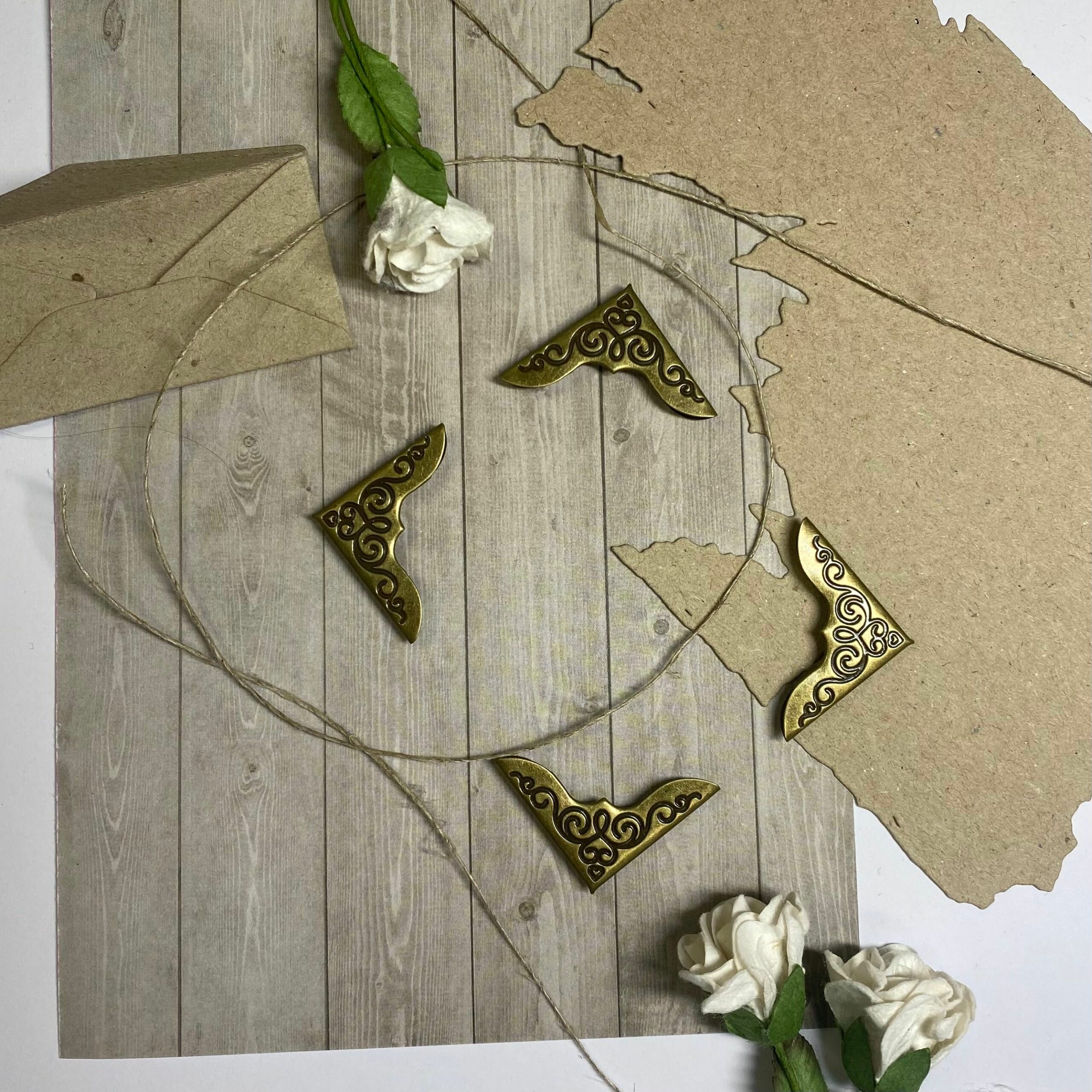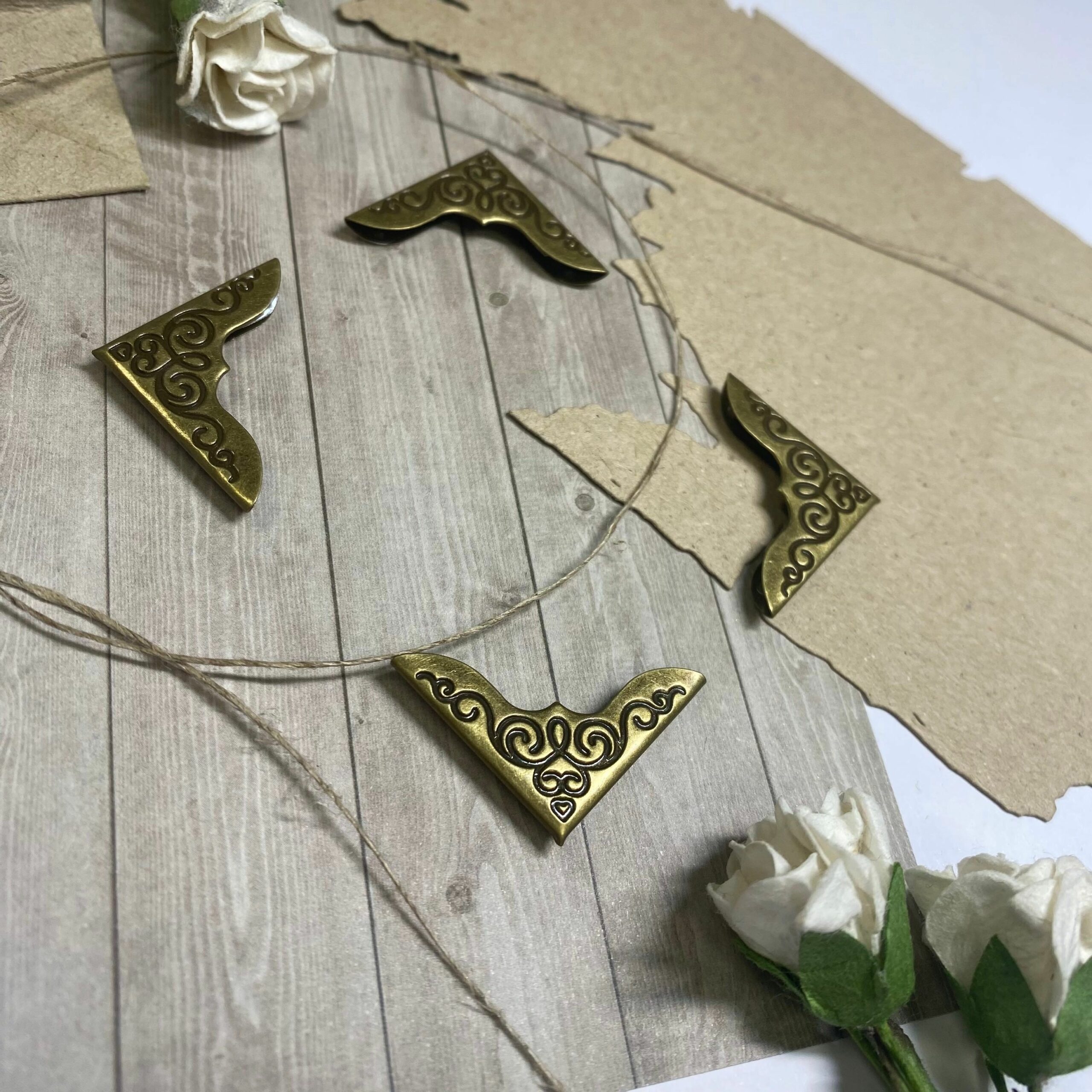 Fina dekorativa metallhörn till album och böcker i antikguld färg.