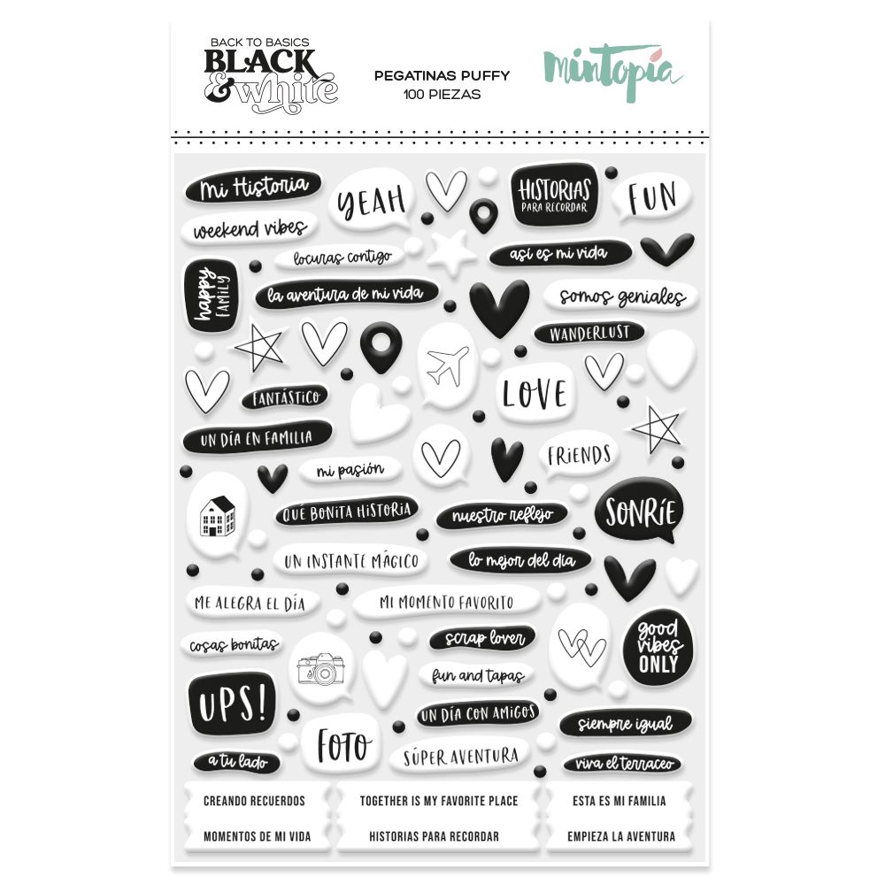 Mintopia Puffy Stickers in Black and White Color, 100 pcs