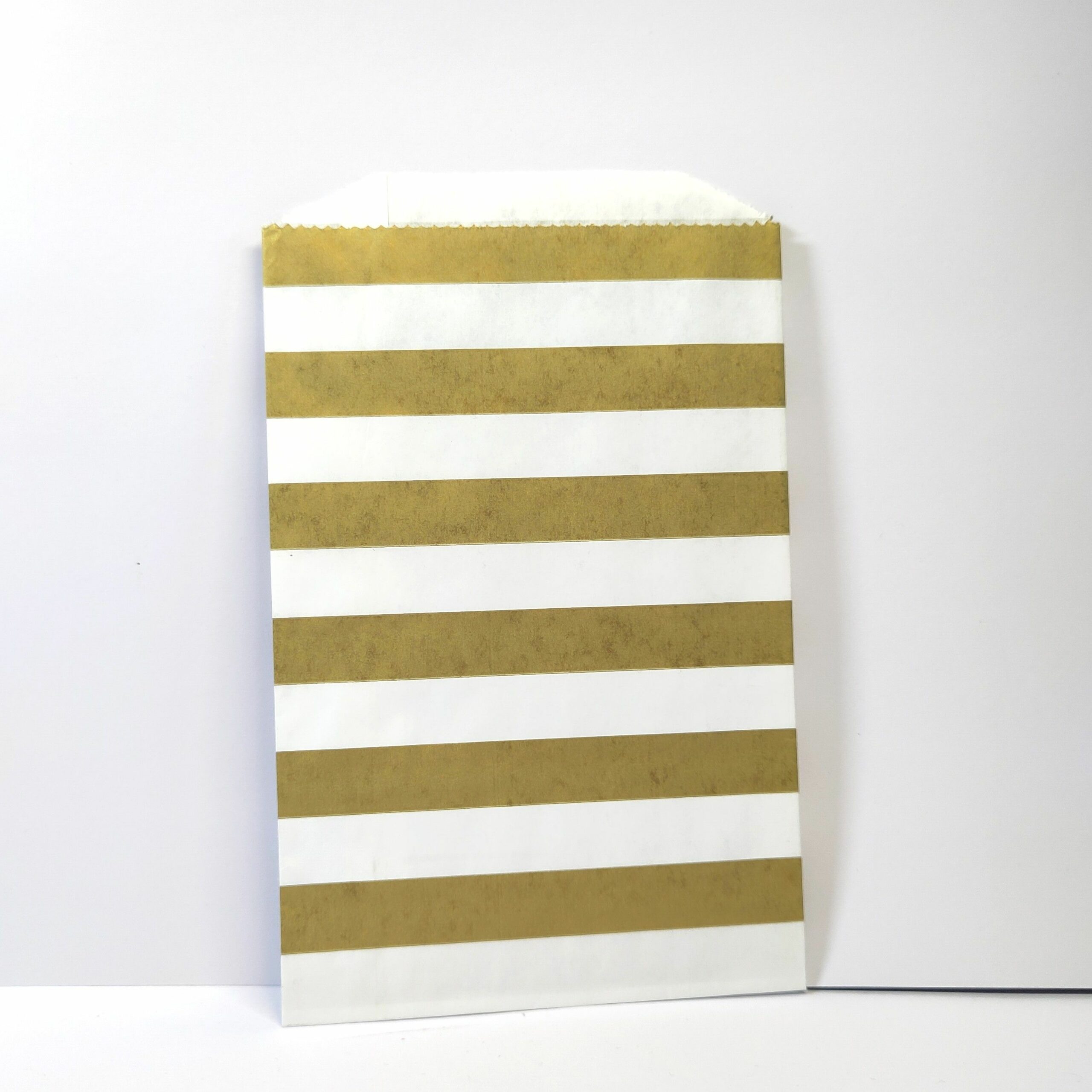 10 st pergamentpåsar med olika mönster i guld och vitt.