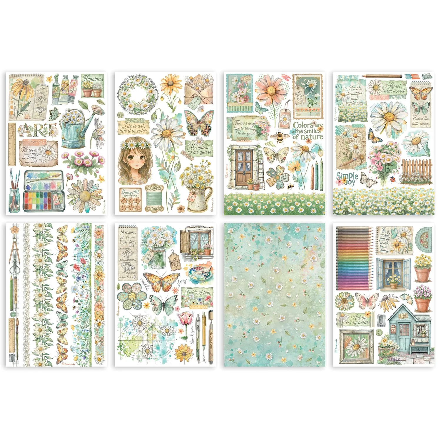 Stamperia, 8x8 Paper Set: Daisy Art