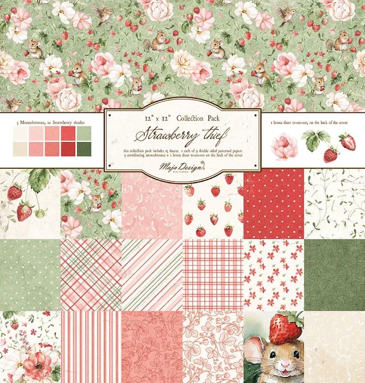 This Collection Pack includes 15 sheets, one each of 9 double sided patterned papers, 5 coordinating monochromes, plus 1 bonus sheet on the back of the cover. Size 12″ x 12″ – double-sided – patterned – heavyweight paper Acid & lignin free, Made in Sweden